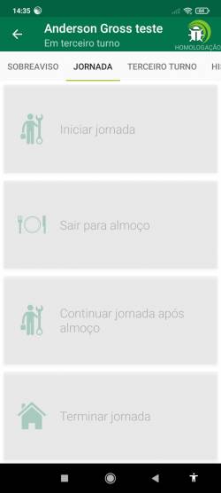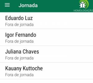 Para registrar a jornada, o colaborador deve clicar sobre seu nome. O aplicativo o direcionará para a tela de jornada individual, isso é indicado pelo nome do colaborador que parece na parte superior da tela.