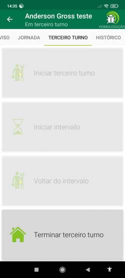 2. Finalizar o Terceiro Turno: Na mesma aba Jornada, clique novamente em “Terceiro Turno” para encerrar e registrar o fim da jornada do terceiro turno.