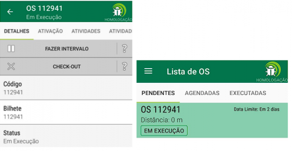 Retornar do Intervalo: Ao finalizar o intervalo, ao acessar novamente a OS, será necessário realizar o Check- out mais uma vez para retomar a execução.