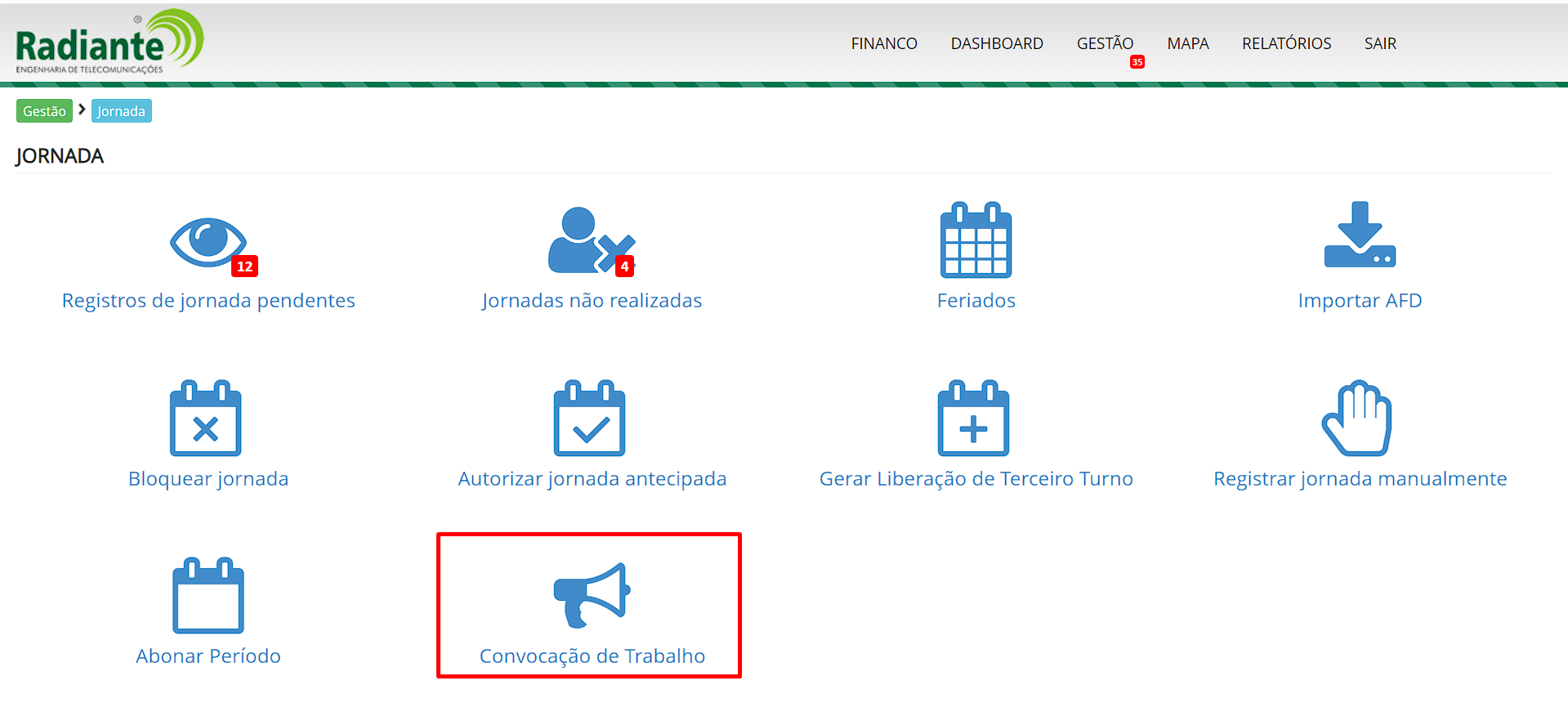 Em jornada, clique em Convocação de Trabalho