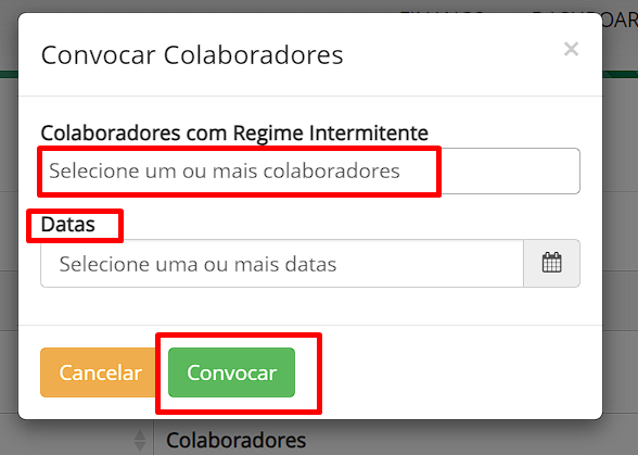 Selecione um ou mais Colaboradores com Regime Intermitente