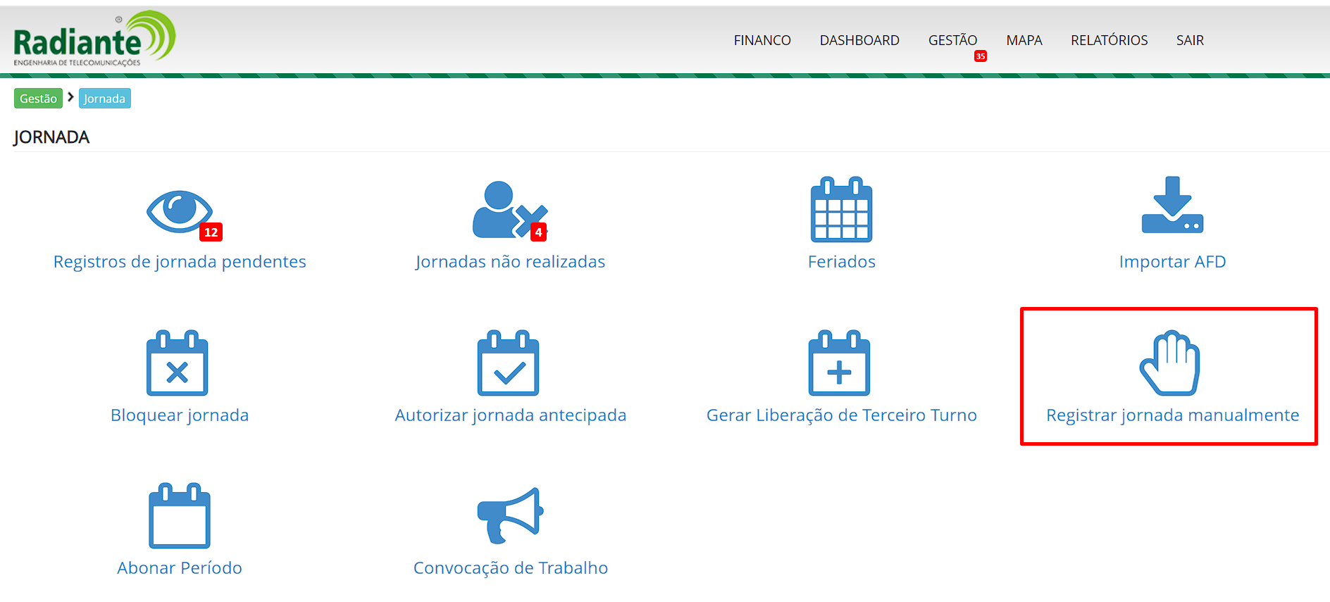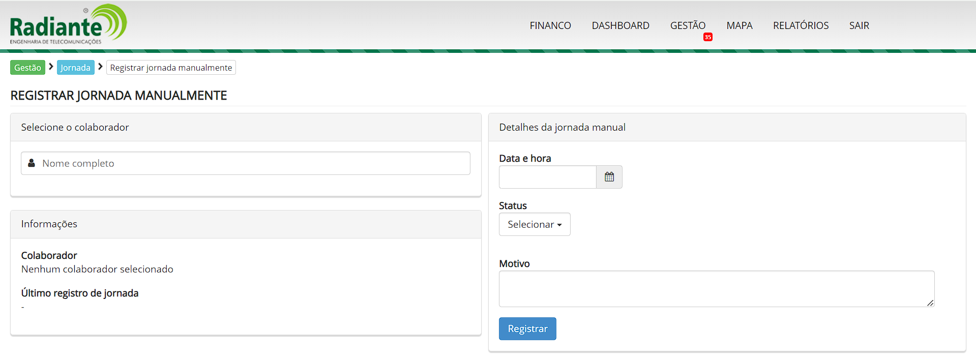 Inicio » Gestão » Jornada » Registrar Jornada Manualmente