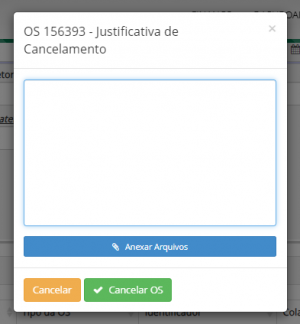4. Cancelar OS: Justifique o cancelamento, anexe arquivos se necessário e clique em cancelar OS.