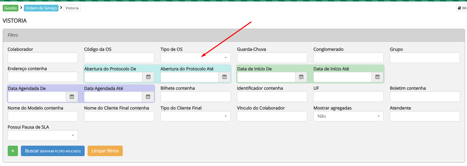 Ao click no tipo de OS vai te aprestar as que estão em vistoria