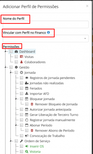 Na tela de permissões você pode gerenciar os perfis e editar os perfis já existentes: