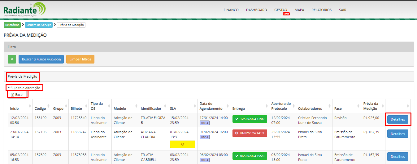 Início » Relatórios » Ordem de Serviço » Prévia da Medição