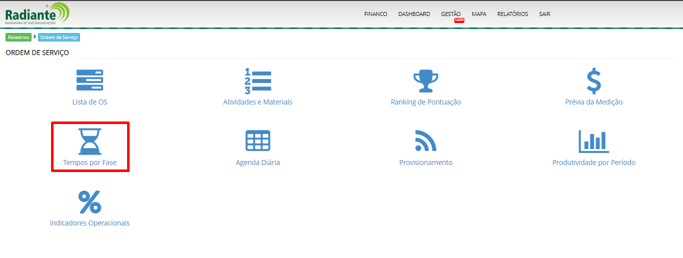 Início » Relatórios » Ordem de Serviço » Tempos por Fase